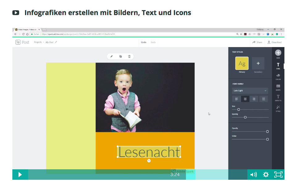 Schüler*innen in eine aktive Rolle zu versetzen und sie mit modernen, multimedialen Techniken vertraut zu machen, ist eine Hauptaufgabe kompetenzorientierten Unterrichtens. Mit Adobe Spark ist das sehr gut möglich. Mit dem kostenlosen Tool Adobe Spark können Schülerinnen und Schüler einfach und unkompliziert Videos, Webseiten und Infografiken erstellen. Die Anwendungen von Adobe Spark sind dabei so intuitiv, dass das Projekt im Mittelpunkt steht und nicht die Einarbeitung in ein neues Computerprogramm. Wie das funktioniert und was man als Lehrkraft dafür benötigt, das lernst du in dieser Online-Fortbildung.