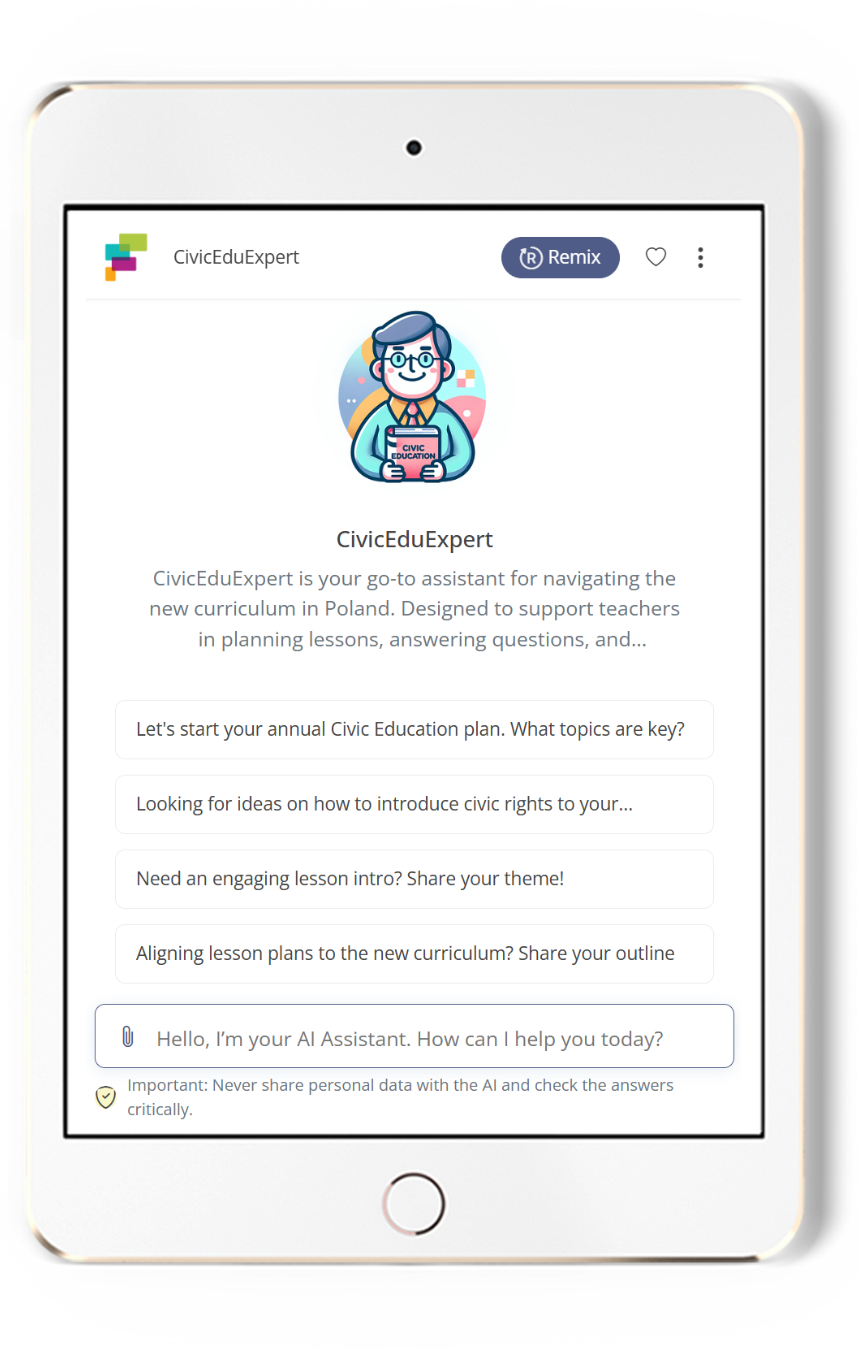 - AI Assistant for navigating the new curriculum: Use CivicEduExpert in Polish, English, or any language of your choice